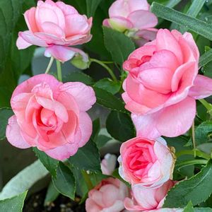 バラ咲きのインパチェンスが少し枝垂れるように咲いてきてとっても素敵です🥰 苗が小さいうちからわりと花付きがよく、ずっと咲いてくれています。