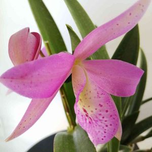④カトレア ハイブリッド。品種はわかりませぬが細長く美しいピンクの花弁にリップの点々がソバカスみたいで可愛い。