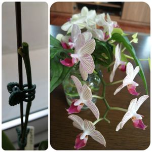 コチョウラン ビーナスが咲き始めてまるっと2ヶ月。お花は全然ヘタレていないけど流石に株が弱るかも…と3節目でカット✂️。 あれれ~既にそこには新しい花芽🌼(だよね?)が〜嬉しい😍😍