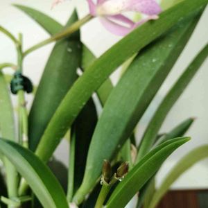 カトレアのハイブリッド花持ちの良い子です。 この子にも新しい花芽が出てきて蜜が付いてます😃🍯 いつ咲くのかな〜ワクワク✨✨