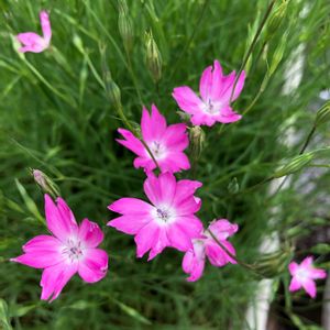 可愛いお花が咲いた❀.*・゚ ご近所さんから小さな苗を頂き、植えておいたら、グングン背が伸びて40~50cmあるかな。名前📛なんだったかな〜?! 皆さんからヒントを頂き、お花の名前がわかりました💡ありがとうございます😊💕 コムギセンノウ(小麦仙納) ナデシコ科シレネ属 別名 ビスカリア チェリーブロッサム🍒 因みに似たお花で、 ムギセンノウ(麦仙納) ナデシコ科アグロステンマ属 別名 アグロステンマ コムギセンノウより一回りお花が大きいそうです🌸