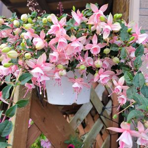 ( *ˊᗜˋ)ノꕤ*.゚おはよ🌱☀️ 🏷木曜日は桃色 ①フクシア🩷もりもり 可愛い😍 ②パンジー元気🩷🩷🩷🍃 ③種まきビスカリア可愛い🌸 ④アジサイが美しい時期😍🩷 🏠は🩷のアジサイが主に😂 ブルーのアジサイが好きだけど ⑤モナルダ咲き出しました🥰 素敵な魅力的なお花 今日も素敵な一日をお過ごしください🍀*゜