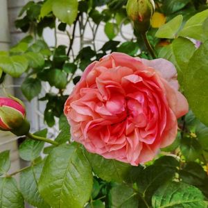 今晩は🌠 南のナチュラルガーデン ER・アンブリッジローズ 明治時代の外トイレ裏の古板塀に ER・ストロベリーヒル ストロベリーヒルかなり調子悪いです(ノД`) 嫋やかな樹形も花も香りも 丸〜るくてピカピカ少し薄緑の葉っぱ🌿も 全てが大好きな薔薇🥰 元気になって欲しい、、、