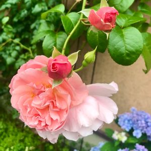 おはようございます☀ 穏やかな朝 午後からお天気下り坂予報 この時期はひたすら花柄摘みとお掃除 早起きして頑張っています😂 お花はぽちぽちになってきていますが、こんなコラボは大好きな色合わせ💕 淡いピンク色に変わってきたERストロベリーヒルさんと溢れ種で咲いているオルラヤさん 癒しの景色です💗