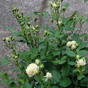 秋の恋きらら全景。 手前は新しく伸びたシュートからの花で満開。奥の方はまだ蕾がけっこうある。 夏剪定の迷いが現れたなぁ😅