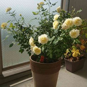 庭の花たち💕🌨 おはようごさいます😊 恋きららが一輪咲きました🥰💕💛↖️ ↘️はゴールデンボーダー どちらもスプレー咲きで似てましたね。😅 恋きららさんは京成バラ園の2018年新種だったのでお迎えしました。 クンクンしたらいい香りがしました🥰 黄色のバラは友情の花言葉もあります💕 GS繋がった皆様、これからもよろしくお願いします🥰🤗