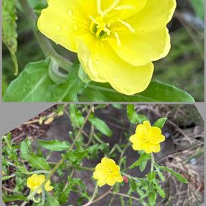 おはようございます☀️ ⬅️メマツヨイグサ ひょっとしてアレチマツヨイグサかと思いましたが花弁の隙間がもっと開くようですね ➡️コマツヨイグサ 地面を這うように咲き花は萎むと赤くなる 昨日6時半頃のpicです💛