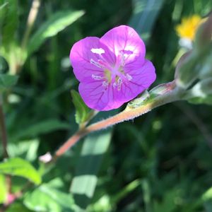 ヒルザキツキミソウ マツヨイグサ属で昼から花を咲かせるという。早朝に咲き出していた。 川の歩道側沿いにひっそり?と咲いているような、薄ピンクが少し目立っていた。 朝露でいっそう透けた感じの艶っぽい花びらが魅力的💕