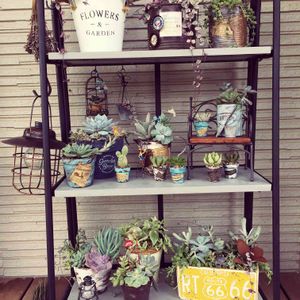 一部、自分で作ったリメイク缶で寄せ植えをしました❣️ 他にも、針金ではしごを作り、電球を針金で巻いて飾りつけしました✨ 鳥籠の中に入れた小さな籠も針金で作りました✨ 小さくて分かりにくいですが、またアップで撮ったものを載せていきます🔍 色々、細々作成して、またまた自己満足しています😊 多肉ちゃん、みんな蒸れないことを祈ります♡♡♡