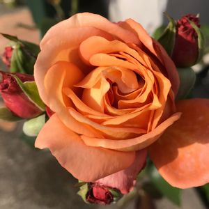 バラ '' マロン '' 茶系のバラが欲しくて迎え入れたマロンさんですが、強風の影響で昨日の朝枝が折れている事が発覚😭 仕方ないので、たくさんの蕾を落とし挿し木にしました‼️