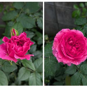 ER ガブリエル オーク 今年お迎えの品種です。 せっかくの開花なのに雨降りです。色合いが気に入っています。 左 昨日 右 今朝