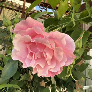 こんにちは😃 毎年暑くなりますね 昔冷夏なんて年もあったなぁ 懐かしい昔の話しですね ① 初の長尺苗でお迎えしたブリーズ DIYフェンスに誘引しました ⓶ 宿根草リナムペレネブルーサファイヤとER カントリーパーソン リナムは2年目です 細くてキャシャなのに雨で倒れても次の日にはさりげなく元通りに 起き上がってます 強くて優しく咲く花です 見習わなやぁ💦 ③ 2年目ER ユーステイシアヴァイ こんなにふさ咲なのに!花クビが落ちないアプリコットピンクのメチャ可愛いお気に入りのバラです ⓸ ナエマ 今年お迎えしました 人気がわかります ⑤ シェーラザード 虫に!やられたぁ 葉っぱチリチリ蕾も全滅😭 切り戻ししたので やっとこさ咲きました 蕾がいっぱいです まだまだ咲きます⤴️
