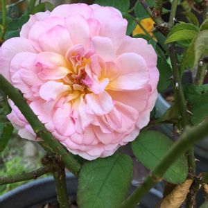 ✾ユーステイシア・ヴァイ✾ この冬、憧れのイングリッシュローズを三鉢お迎えしました。イングリッシュローズは、台木が日本でよく用いられるノイバラではないとのこと。難しいイメージがあったのですが、薔薇好きたるものイングリッシュローズを育てなくてどうする!!と、ついに踏み出しました☺ 最初に開花したのは、ユーステイシア・ヴァイ🌹 透明感のある爽やかな香りがします✨