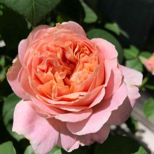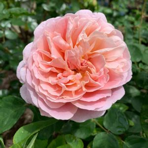 初めて咲いた新品種です。 イングリッシュローズにしては株は小さいですが、フルーティな香りです大輪の花は鉢植えにも向いてそうですね。花の形はアブラハムダービーの面影もあるような感じです。