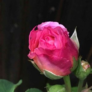 ばらのユーステイシア ヴァイ です。蕾のときに、茶色い尺取り虫にかじられ、心配しましたが、なんとか咲きそうです💕でも、なんだか小さい💦 害虫、病気対策、きちんとしなくては😆