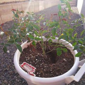 秋のバラ①🌹✨ アメリカ生まれの耐病性に優れたバラ🌹✨ 私の庭のこの秋のニューフェイスです! 樹高50cmくらいで小さめ。 地植えにするか悩み中😕