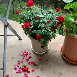 🌹トゥルーブルーム レッドキャプテン🌹 秋までずっと咲き続けるミニ薔薇です🌹 処分品で2株を可愛くて持ち帰りました。今初めて咲出してきました💖