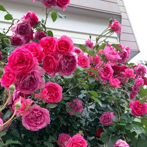 華やかなパレード𗁳 つるバラで四季咲き。 我が家では古株になってきましたが まだまだ、たくさんの花を咲かせます。