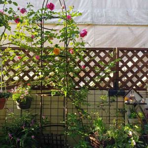 薔薇パレードがいよいよ満開です。 お隣さんの方に行かないように麻ひもで結びました。🌹🌹🌹