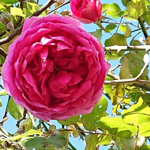 庭に出て見上げたらパレード🌹 落ち葉🍂も引っかかってるし😅 そろそろ剪定したいんだけどなぁ~😂