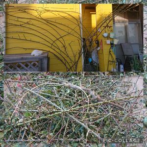 パレード🌹誘引終わった~🙌🎵 ノコギリも駆使し切った枝の山😆 記録用に~🎵 やりかけのバレリーナ🌹とカクテル🌹も終わらせ、旦那がガーデンシュレッダーで細かくして、ぎゅうぎゅう詰めゴミ袋に2つ近く😆 ガーデンシュレッダーいいお買い物だったわ~🎵 地植えのツルバラ🌹あと5株。やりかけのもあるから毎日少しづつ出来れば年内終わるかなぁ~(* ´ ▽ ` *)🎵