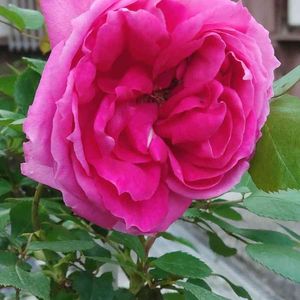 ようやくイングリッシュローズ「ジュードオブスキュア」が開花しそうです。奥がつるバラ「パレード」