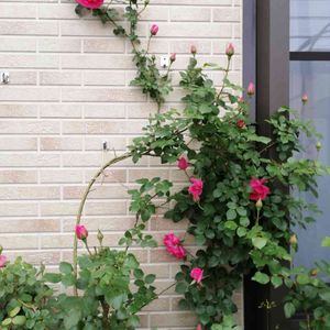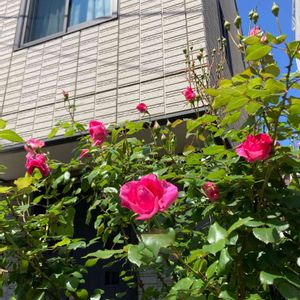 我が家のつるバラの中ではヒョロヒョロしているパレード。一年目(新苗のとき)に花を付けすぎたせいかもしれません(現在4年めくらい)。