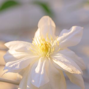❝ クレマチス ❛ダッチェス・オブ・エジンバラ❜ ❞ ❛ 早朝の優しい陽射しを浴びて おそらく、今年最後のマイガーデンでのクレマチスの開花 ❜ 《 出来るだけ、一枚一枚、別の人が撮った様な枠/形に嵌らない写真にしたい》 こんにちは! コロナウィルス感染、気を緩めずに!。。。ですね! やっとマイガーデンで綺麗に咲いた花を撮影出来ました。 これからワンステップ(+1/3)をプラスに露出補正すると白飛びが花弁の大きな部分に拡がります。 ハイキー上限、限界です。 白飛びの有無、範囲がどうなっているか?を正確に把握することは特にハイキーでの重要なポイントのひとつです。 なかなか、マイガーデンでの被写体が見つかりません・・・。 お出かけ先写真が多くなっています。。。 ‘お出かけ先’では、マイガーデンでの撮影よりも、創造性豊かでスケールの大きな、柔軟な、自由な写真を写すことが出来ます。 その意味では私には貴重な一枚です。 お出かけ先の美しい、魅力的な植物、どうしても撮影時の思い入れはまったく違います。 また、‘お出かけ先’での撮影の方が写真愛好家の観方では、写真としてはずっと奥が深く、楽しいです。 短い時間ながら、実物の ❛ダッチェス・オブ・エジンバラ❜ が持つ自然・ナチュラルな白、繊細さ、柔らかさ、を活かして写し出すべく、撮影設定で工夫を試みています。 撮影日:2020年11月17日 早朝 100mm(=実効)のマクロレンズでの撮影 絞り:F / 5.6