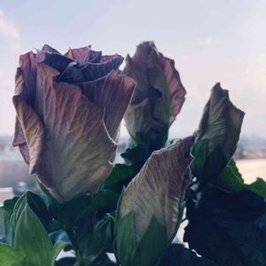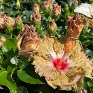今日のお花 ハイビスカス 伊良湖岬のハイビスカス ゴールデンタイム 初め見た時枯れてるのかと思っちゃいました😅 花も蕾もくすんだ様な色。 原色のハイビスカスとは違った雰囲気のお花でした😳‼️