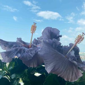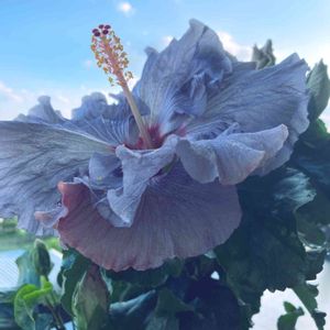 今日のお花 ハイビスカス🌺 伊良湖岬のハイビスカス デニムブルー ハイビスカスらしくない色合いに目がくぎ付け👀💕 デニムブルーと言うよりブルーグレーのような感じの色でした