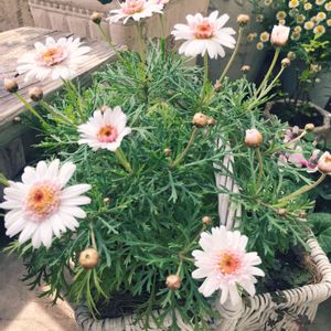 今年も咲いた〜♬ 大好きな ボンザマーガレット イチゴショート🍓ウルル咲き お手入れしなくても まとまりまーす! 私に ピッタリ♬ ピッタリ♬