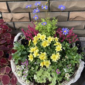 検査入院から帰って来たら こんな事になっていました 花がもぎ取られて 花びらもちぎり取られ すぐ横に訳のわからない物と 一緒に捨ててありました 中央のビデンス・レモンアイスの花が無惨な姿に ショックです😭