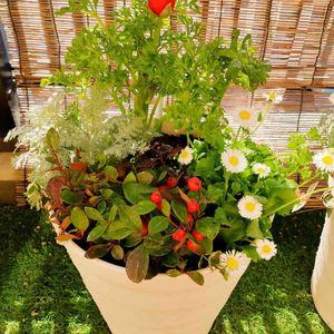 寄植え💐 🌼アネモネポルト ホワイト 🌼ラナンキュラス レッド 🌼シルバーレース 🌼チェッカーベリー 🌼イングリッシュデイジー