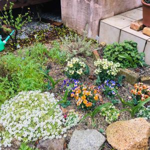 アジュガが上がってきました。 このアジュガは、いまは亡き大伯母の庭からいただいてきたもの。 そして、アジュガを植えているもの、何かわかります? こちらもいまは亡き祖父が使っていた道具です。炭入れ?っていうのかな? これで寝床のこたつに炭を運んでいました。 姉弟コラボ完成╰(*´︶`*)╯♡