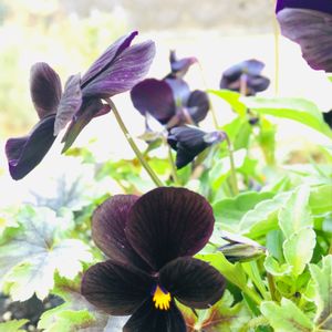 こういう色のビオラは初めて買いました。 とことんシックに寄せ植えました。