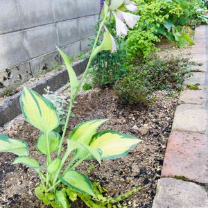 混みすぎ?影すぎ?て全然大きくならなかったギボウシ。 あまり明るくはないけど、広々したとこに移動。 どうなるかな。