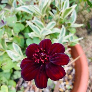 お亡くなりになったと思ったチョコレートコスモスが咲いてくれました。 おしゃれな花だわ。
