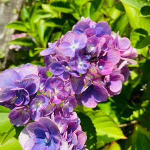 秋アジサイ マジカルハイランドジアと言う紫陽花です。少し遅めに花が咲きました。 その手前はアズライトで大きくて目立ってました。6月26日に(6の付く日)がいいらしいので他の紫陽花は剪定しました💕 緑色を鮮やかにするポイントは、直射日光でなく日影がいいそうです❤️❣️