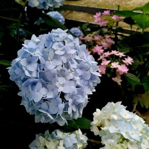 初夏から秋まで花を付ける事ができる紫陽花、エンドレスサマーです。 珍しく新枝咲きなので、初夏に一番花が咲いた後、剪定した後に伸びた枝先にも花房がつきます。 地植えで10年くらい育てていますが、我が家で2番花が付いたのは1回だけ😅 暖地では難しいようで、寒い地方では花芽が出来やすいとか…。 すっきりとした一重のてまりで爽やかな透き通るような花色ですね💓