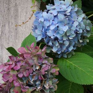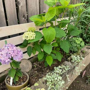 紫陽花エンドレスサマー 1年目。 上が今日。 下は1週間前。 青アジサイの肥料をあげたからか少し青くなってきた。