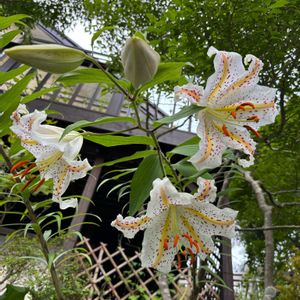こんばんは🌇 ①山百合の蕾 ②ウバユリの葉っぱ ③ウバユリの花後種が飛んだ後 ④山百合の花 これは去年のpicです。 今年も、山百合が庭のあちこちに咲きそうです。 ウバユリも、びっくりするくらいの葉っぱの数、ウバユリは、花が付く頃には葉が無くなります。 少し緑がかったラッパ🎺の様な花が咲きます 葉の色は、毒々しい感じですが、花は、控えめな花 明日から、仕事、頑張ります。 おやすみなさい💤