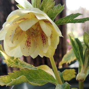 クリスマスローズ オーレア系スボットダブル 俯き加減に咲く姿がかわいいです 木漏れ日の中で咲いている蕾もかわいかったので(灬º‿º灬)♡ 蕾にピントを合わせてみました