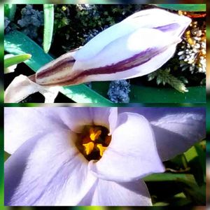 ハナニラ🌼開花第1号😆 紫色の蕾のラインも素敵でしょ💜 朝晩は閉じていて 昼間は開いていますよ🎵