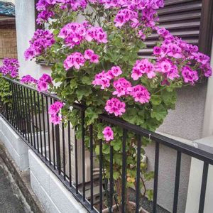 ゼラニュームご近所鉢。 でっかくなるもんですね。 鉢あわせたら2メートル以上です🌞🤗🎶