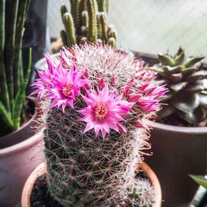 咲き始めたマミラリア 月影丸…ムーンライトと言えば格好いい💮😆