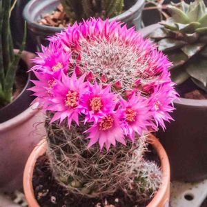 花かんむり🌵💖 月影丸てこんな咲き方するんですね🥰🎶 …ムーンライトマミラリアと勝手に呼んでます🤗。