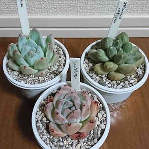 GW前にポチった多肉さん、GW明けにカワイイ梱包で届いてこないだ植え替えた😆💖手前がアルバビューティー、奥左が氷山、奥右がオビフェルム×パキフィツム🍀✨ アルバビューティーはエレガンス系の肉厚な多肉さん(*´ω`*)💓今もピンクで存分にかわいいけど、紅葉は紫寄りの色にもなるようで(>艸<*)💕楽しみだ事😆🎵 氷山はエレガンス系のアルビカンスとコロラータの交配だそうで😃💡スケスケとムチムチが混在とか、最高やん😍💖 そしてオビフェルム×パキフィツムは、完全一目惚れ(*´∇`*)💘✨プリプリの葉っぱにウォーターマークは、絶対見逃せないっ😘❤️でもHPにはもともと「オビフェラム」と書いてあったけど、いくら検索しても出てこない(´・ω・`)💦ラテン語表記を見たら、どっちも読めそうなのでオビフェルムで💡そしてお迎えして気づいた、空美人にそっくり🤣🤣🤣 ステキな多肉さんをお迎えできました🙆🍀