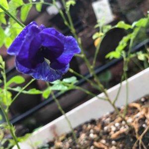 雨が続き、水遣りもしなくていい代わりにパトロールも出来なくて・・ 今晴れ間が覗いてたので、ベランダに出たらなんとバタフライピーが知らぬ間に咲いていました💙 去年は10粒植えて全て発芽したのに、今年は梅雨が早かったせいか、発芽0😱 だいぶ経ってからようやく3つほど発芽発見・・ そして今日やっと待望の花を🙌 売るほど←冗談🤭 バタフライピーのお花を乾かしてお茶をたくさん作ろうと思った野望は無理そうですが、自分が少し楽しむくらいは出来そうです☆٩(。•ω<。)و