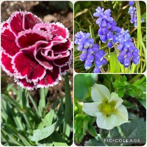 小さい小さい花壇😊 いい香りのダイアンサス 苺の花 ムスカリ かわいいねー😊 来年はもう少し花壇を拡張しよう 💪