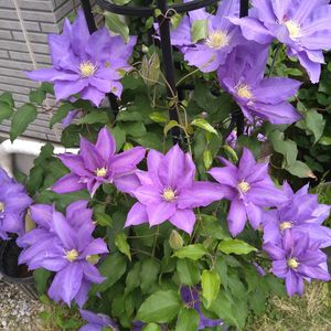クレマチスH.F.ヤング 春の開花後、伸び悩んでましたが 気温が落ち着いてグイグイ伸びて大きな花を咲かせてくれました どこにでもある品種ですが、丈夫、花の迫力、花色ととても良いお花ですね それゆえにどこにでもあるのでしょうね